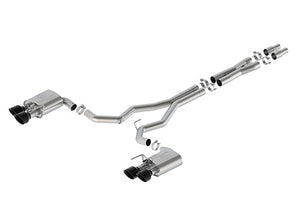 Upgrade the appearance and sound of your factory equipped active exhaust Dark Horse Mustang with this full 3.0” Cat-back exhaust featuring quad 5" black chrome plated stainless steel tips