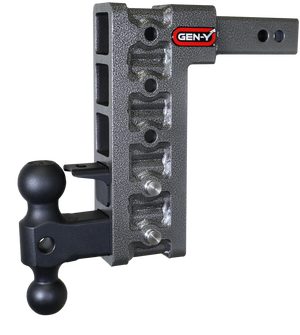 GEN-Y's Mega-Duty Adjustable Drop Hitches start at 10,000 LB towing capacity and go up to 32,000 LB towing capacity. There are multiple drop options as well depending on your trailer towing needs. Catalog Datasheet