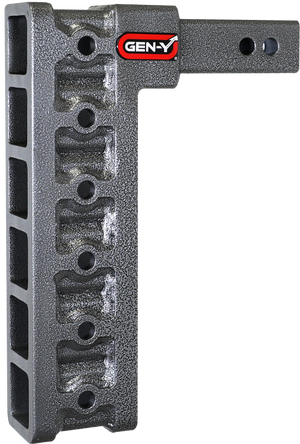 GEN-Y's Mega-Duty Adjustable Drop Hitches start at 10,000 LB towing capacity and go up to 32,000 LB towing capacity. There are multiple drop options as well depending on your trailer towing needs. Catalog Datasheet