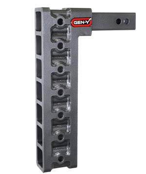 GEN-Y's Mega-Duty Adjustable Drop Hitches start at 10,000 LB towing capacity and go up to 32,000 LB towing capacity. There are multiple drop options as well depending on your trailer towing needs. Catalog Datasheet