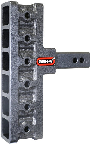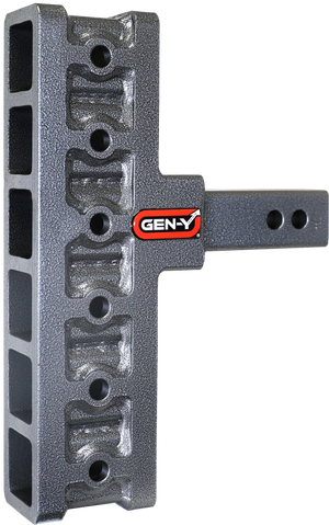 GEN-Y's Mega-Duty Adjustable Drop Hitches start at 10,000 LB towing capacity and go up to 32,000 LB towing capacity. There are multiple drop options as well depending on your trailer towing needs.