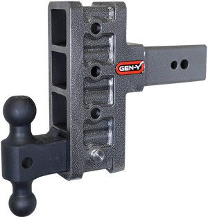 GEN-Y's Mega-Duty Adjustable Drop Hitches start at 10,000 LB towing capacity and go up to 32,000 LB towing capacity. There are multiple drop options as well depending on your trailer towing needs. Catalog Datasheet