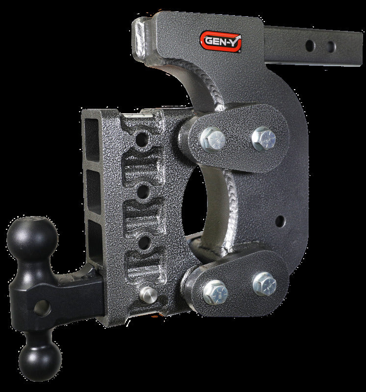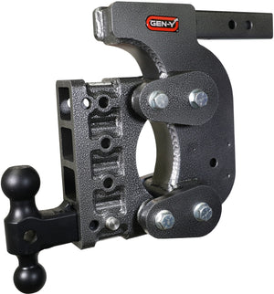 GEN-Y's Boss Adjustable Drop Hitches start at 10,000 LB towing capacity and go up to 32,000 LB towing capacity. The Torsion-Flex Drop Hitch is the best hitch for ultimate control and safety while towing any bumper style trailer on the market including pintle style couplings. Catalog Datasheet