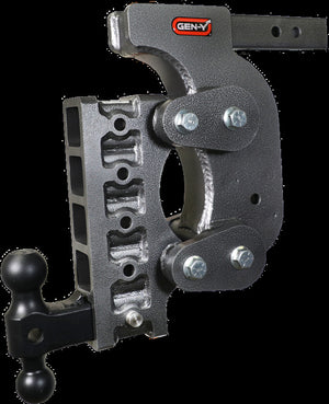 GEN-Y's Boss Adjustable Drop Hitches start at 10,000 LB towing capacity and go up to 32,000 LB towing capacity. The Torsion-Flex Drop Hitch is the best hitch for ultimate control and safety while towing any bumper style trailer on the market including pintle style couplings. Catalog Datasheet