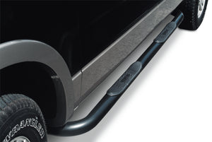 The 4000 Series Side Steps are a pair of classic 3" round tube steps with a 90° bend at each end. High-traction composite step pads makes entering and exiting a truck or SUV safe and easy. Installation is simple with no cutting or drilling required on most vehicles. Vehicle-specific mounting brackets are included. 4000 Series StepGuards are available as Center Grille section-only or with protective Brush Guards. 4000 Series bars come with a Limited Lifetime warranty on materials and construction and a 5 year warranty on the Semi-Gloss Finish.