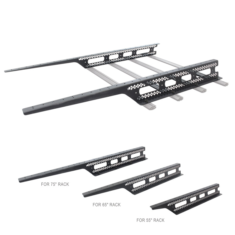 The 4-CORE system of extruded aluminum rails on Go Rhino's XRS and SRM Series of products includes a wide variety of overlanding and trail accessories. The XRS Cab Overhang Mount Kit For 75" Rack allows you to mount one 4-CORE-equipped product onto another, such as attaching an SRM Basket Rack on top of the XRS Xtreme Rack. XRS Cab Overhang Mount Kit For 75" Rack comes with a Limited Lifetime warranty on materials and construction and a 5 year warranty on the Textured Black Finish. Installation Instructions