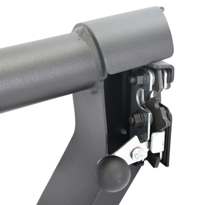 Go Rhino’s Trailline™ Tube Doors remove the final barrier to the total, immersive outdoor experience while offering a stylish alternative to factory doors. Manufactured from 2” steel tubes fully welded onto 16-gage steel plates, these doors are designed for both utility and ease of installation. The easy-grip ball latch handle double-clicks for both easy-close and hard-close. Adjustable rubber plungers balance the door to the frame to eliminate vibration and rattling. The cast steel hinges utilize the factory hinge pin and the factory nuts for easy installation.