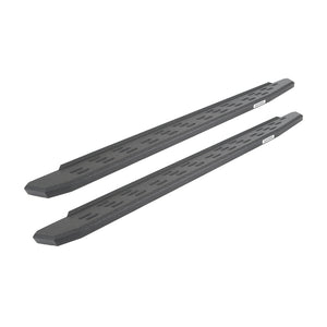 Meet the third edition of the legendary Go Rhino RB Series of running boards: the RB30. The RB30 is the next generation of Raptor-inspired design that will make your truck, Jeep, Bronco or SUV stand out from the crowd. With its aggressive, stylish appearance, this cab-length, bolt-on side step provides maximum traction and features an open flow-through design that prevents mud, ice, and snow from accumulating. The corrosion-resistant 16-gauge steel step mounts tightly to factory mounting points along the lower rocker panel, providing plenty of clearance for off-roading, and it’s strong enough to support 300 lbs. per stepping surface for 600 lbs. per board. The RB30 Running Board is 7” wide for most its length before it tapers. All RB Series Running Boards are available in Textured Black Powder Coat or Protective Bedliner finish, made in North America and offer a limited lifetime warranty against manufacturer and material defects, with a 5-year warranty on the finish.