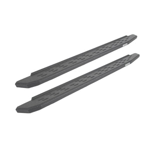 Meet the third edition of the legendary Go Rhino RB Series of running boards: the RB30. The RB30 is the next generation of Raptor-inspired design that will make your truck, Jeep, Bronco or SUV stand out from the crowd. With its aggressive, stylish appearance, this cab-length, bolt-on side step provides maximum traction and features an open flow-through design that prevents mud, ice, and snow from accumulating. The corrosion-resistant 16-gauge steel step mounts tightly to factory mounting points along the lower rocker panel, providing plenty of clearance for off-roading, and it’s strong enough to support 300 lbs. per stepping surface for 600 lbs. per board. The RB30 Running Board is 7” wide for most its length before it tapers (compared to 5” wide for the Slim Line version). All RB Series Running Boards are available in Textured Black Powder Coat or Protective Bedliner finish, made in North America and offer a limited lifetime warranty against manufacturer and material defects, with a 5-year warranty on the finish.