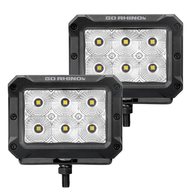 Go Rhino Xplor Bright Series Rectangle LED Flood Light Kit (Surface/Thread Std Mnt) 4x3 - Blk (Pair) - 753003023FBS