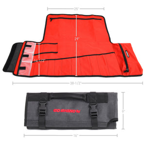 Go Rhino’s Xventure line of soft-shell tool rolls combines new age materials with artisan craftsmanship to provide a stylish solution for your tool storage needs. The handcrafted, heirloom quality rolls are lightweight, yet tough enough to protect your tools for a lifetime. The water-resistant waxed canvas rolls feature double wall construction and a black, custom dyed surface that is easy to clean and ages with a unique, attractive patina. The interior is a heavy-duty poly material that is bright red, which makes it easy to identify your tools, and has integrated nylon webbing for pockets. Xventure Tool Rolls are available in a variety of sizes and come with a limited lifetime warranty.