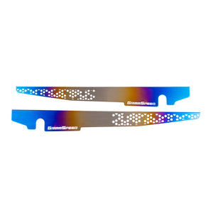 Changing things up a little bit, our new Titanium Shrouds take the same shape of our classic black or red Engine Bay Shrouds and bling them up a bit with a brilliant burnt ombre finish on laser cut titanium covers. On top of that, we are also including a set of custom GrimmSpeed dress-up washers and titanium bolts for mounting.
