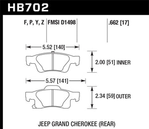 Hawk 11-12 Dodge Durango / 11-12 Jeep Grand Cherokee LTS Rear Street Brake Pads - HB702Y.662