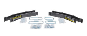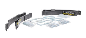 The Hellwig LP-15 helper spring line fits the Mid-size and Small pick-up groups. Manufactured with heat treated ASTM 5160 alloy spring steel in our California based facility, these units increase your vehicles level load carrying capacity up to the manufacturer?s Gross Vehicle Weight Rating. Featuring heavy duty components and easy to read installation instructions this helper spring line-up does a lot of work for its size. Simple bolt on design using common hand tools provide the installer ease of installation and the vehicle owner hassle free use. Packaged in one kit, this unit comes complete with plated and powder coated components, spring leaves, heavy duty hardware and installation instructions to make this unit easy to install and use. Fine tune your vehicle?s leaf spring suspension to suit your particular needs by adjust ing the heavy duty U-bolts provided. If your tow and haul needs change, simply adjust the heavy duty U-bolts to suit the new requirement. Once installed and adjusted you are free to haul and/or tow a multitude of equipment and commodities with greater control and stability.
