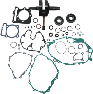 Everything needed to rebuild the bottom end in one convenient box. The Bottom End Kits include the crankshaft, main bearing and seal kit, as well as the complete top and bottom end gasket kit with seals.