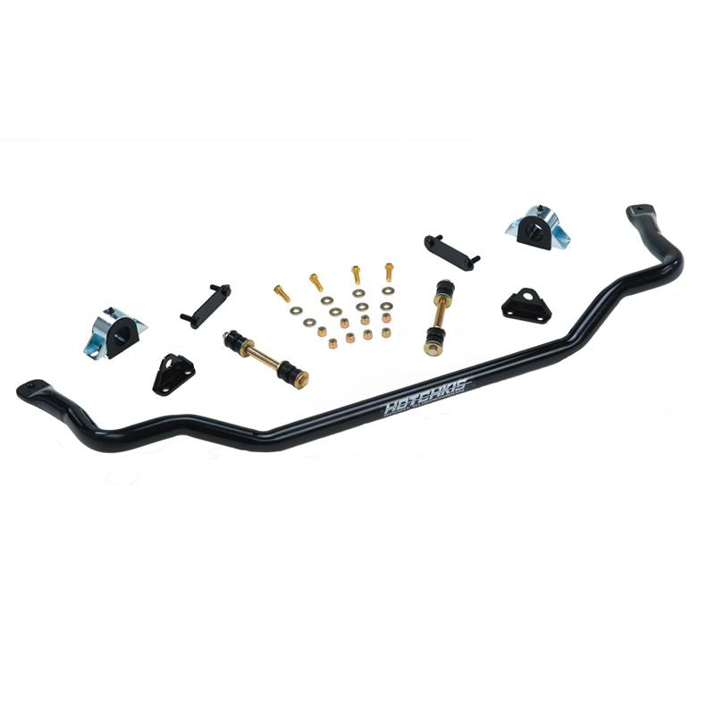 Hotchkis Sport Suspension 22105F Tri 5 1955-1957 Chevy Front Sport Sway Bar. Dramatically improve the cornering performance and traction of your 1955-57 Chevy with the Hotchkis Sport Suspension Sway Bar Package. Features: Front sway bar-lightweight durable 1-3/8 in. tubular steel 60% stiffer than stock sway bar (800 lbs./in). Gloss black powder coat finish. Benefits: Brings handling excitement to the classic Tri-Five Chevy. Increases stability improves traction and reduces body roll by increasing front/rear roll stiffness. Easy bolt-on installation in front.