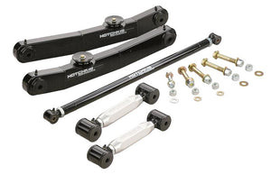 Improve handling and traction on your 67-70 Chevrolet B-body by upgrading your flimsy stock suspension. Includes fabricated lower trailing arms adjustable upper trailing arms (2) adjustable pan hard rod and hardware. Note: This package has two (2) upper trailing arms. Vehicles equipped with one (1) upper arm should use part # 1821.