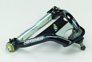 Hotchkis Sport Suspension 1106 1970-1981 Camaro/Firebird Tubular Upper A-Arms. Install the geometry corrected Hotchkis Sport Suspension Tubular Upper A-Arms on your 70-81 Camaro or Firebird and gain vastly increased handling and control. These TIG-welded bolt-on arms offer increased camber and caster adjustment over stock for ultimate driving performance. Finished in gloss black powder coat the Arms are ready to install and are complete with ball joints. Billet cross-shafts and smooth operating Delrin bushings. Exceptional handling performance when combined with the Hotchkis Sport Suspension Tubular Lower A-Arms. Features: Geometry corrected design. Built in - 1.1 deg of Camber 5.2 deg of Caster 100% TIG-welded 1.25 in. tubular steel construction. Silver zinc plated 4130 Chromoly billet cross-shaft. Easy to lubricate Delrin bushings. Upper ball joints and polyurethane droop stops installed. Laser cut Hotchkis logo. Gloss black powder coat finish Benefits: Cross-Shaft allows increased static negative camber without a large alignment shim stack. Great for header clearance issues. Increased Caster improves high speed stability and camber gain during turning thereby increasing front tire traction. Smooth operating Delrin bushings allow minimal deflection through travel range. Achievable specs when using 1106 upper control arm and 1108 lower control arm. MAX Caster with Uppers and Lowers = 9 deg MAX Camber with Uppers and Lowers = - 3.5 deg Installation Instructions Certificate of Origin Warranty