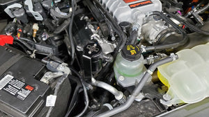During the process of venting crankcase pressure back through your intake track, large amounts of oil, in the form of vapors can gather/accumulate in your intake tube, intake manifold runners and even dilute your gas, lowering its octane level. This happens on all engines and is even worse with forced inducted vehicles (supercharged and turbocharged) as crankcase pressures are increased. To combat this, we have developed an oil separator of our own design. Milled from solid billet aluminum this is a rock-solid piece. It has a knurled tank base for easy removal to drain the spent oil and an O-ring seal to prevent any leaks. Filtering consists of a fine mesh stainless steel screen that traps fine oil vapors and releases them once heavy enough to fall. They then pass through a 1/2" thick 1/16th" aluminum honeycomb filter where they grow every larger and then fall into the bottom. By the time the oil gets through the filter it's too heavy to be passed on into the intake. The tank holds 3 oz of fluid, while that may not sound like a lot, you shouldn’t see that much oil in your PCV system. Drain it every 2000-3000 miles and you will never come close to filling it.
