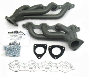 JBA shorty headers are one of the foremost performance upgrades you can bestow upon your beloved car, truck, or SUV. JBA Headers are significantly less restrictive than stock manifolds and dramatically increase the power and efficiency of your engine. Each header is constructed from durable stainless steel to endure the abuse of racing, towing, and daily driving – built to withstand it all. JBA’s proprietary Firecone collector design uses race proven technology for producing maximum power and torque gains where you drive most. Each system includes factory style emission connections and high-quality hardware for a professional no-leak installation.