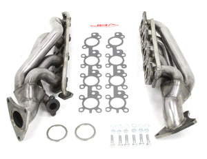 JBA shorty headers are one of the foremost performance upgrades you can bestow upon your beloved car, truck, or SUV. JBA Headers are significantly less restrictive than stock manifolds and dramatically increase the power and efficiency of your engine. Each header is constructed from durable stainless steel to endure the abuse of racing, towing, and daily driving – built to withstand it all. JBA’s proprietary Firecone collector design uses race proven technology for producing maximum power and torque gains where you drive most. Each system includes factory style emission connections and high-quality hardware for a professional no-leak installation. Catalog Installation Instructions