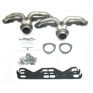 JBA shorty headers are one of the foremost performance upgrades you can bestow upon your beloved car, truck, or SUV. JBA Headers are significantly less restrictive than stock manifolds and dramatically increase the power and efficiency of your engine. Each header is constructed from durable stainless steel to endure the abuse of racing, towing, and daily driving – built to withstand it all. JBA’s proprietary Firecone collector design uses race proven technology for producing maximum power and torque gains where you drive most. Each system includes factory style emission connections and high-quality hardware for a professional no-leak installation.