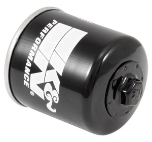 K&N powersports oil filters contain a modern synthetic filter media, designed for ultimate flow with less pressure drop, yet engineered for outstanding filtration. K&N powersports 'spin-on' oil filters feature a heavy-duty metal can. Most of these have a 17 mm nut affixed onto the end that allows for easy removal. The 17 mm nut is crossed-drilled so racers can safety wire the filter to their bike.