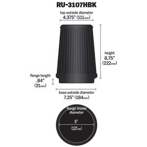K&N Universal Air Filter (5in Flange / 6-1/2in Base / 4-3/8in Top OD / 8-3/4in Height) - RU-3107HBK