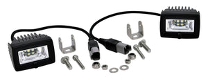 FEATURES-2 x 20W 2" C2 LED Area Flood Lights-Durable Diecast 6063 Aluminum Housing-UV Resistant Black Powder Coated Housing-Dual Oversized Heat Sink Design for Cooler, Brighter and Longer Lasting LED Performance-Gore Military Grade Breather Membrane to prevent condensation and entry of dust/contaminants-Optically Clear and Shatter Proof Lexan Lens-Ideal for Illuminating Immediate Areas as a Scene, Work or Effective Backup Reverse light-120 Area Flood Beam Pattern For Evenly Distributed LightingLIGHT PERFORMANCE(PER LIGHT)-RAW Lumens: 2,200 lm-LUX @ 10 meters: 27 lx-Candela: 2,700 cd-Beam Distance (Meters): 104mSPECIFICATIONS(PER LIGHT)-Wattage: 20W-LED Source: CREE XMK-LED Color: 6000K-Amp Draw: 1.6A-Voltage: 9V-36V-IP Rating: IP69K-Product Dimensions: W - 2.85" x H - 2.21/1.91" x D - 2.17"Parts Included in every pair pack system-(2) 20W 2" C2 LED C-Series LED Scene Lights-(2) Z Brackets-Wiring Harness w/ Weather Proof DT Connectors and SwitchOPTICAL PERFORMANCE AND LED EFFICIENCYKC's C2 utilizes ultra wide 120 degree flood reflector optics to provide smooth and evenly distributed light across a horizontal field of vision. This light is ideal for illuminating immediate areas as a work or scene light, and also as an effective reverse backup-light for all vehicle types.DURABLE CONSTRUCTION FOR RELIABLE LIGHT PERFORMANCEConstructed from a lightweight military grade (US MIL-810-STD) IP69K rated sealed Aluminum Die-Cast Housing with shatter proof GE Lexan lens for an impenetrable, waterproof housing.The C2 scene light was built to last, utilizing advanced Dual Heat-Sink design for maximum heat dissipation to ensure optimum light performance for up to 50,000 hours.