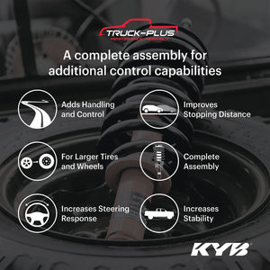 The KYB Truck-Plus Performance Assembly is the best replacement solution to upgrade the performance of your truck. KYB does not cut corners or take a one-size-fits-all approach when designing and manufacturing the Truck-Plus. Consider this, a strut assembly handles vehicle weight, determines ride height, acts as the steering pivot, controls vehicle stability and can affect a vehicles electronic crash avoidance systems. Dont trust a part designed to fit multiple vehicles and dont trust anything less than KYB.