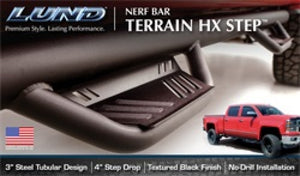The LUND Terrain HX Step(TM) is an aggressive but functional design, these nerf bars provide a rugged off-road look that also makes it easier to get in and out of a truck. The design adds rocker panel protection from the road debris and helps guard against door dings.