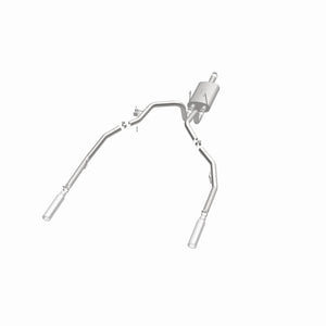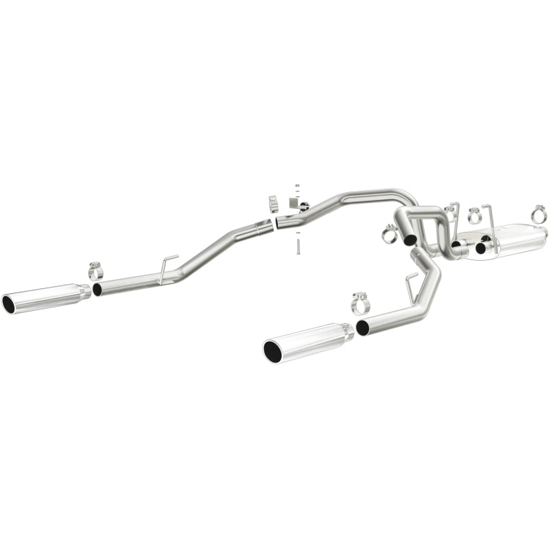 The MagnaFlow Street Series Cat-Back Performance Exhaust System 15249 brings out the personality of your Truck with our signature resonant, powerful engine tone and dyno-proven performance. Thanks to its fast-flowing, mandrel bent 3in. main piping and 1 Straight-Through mufflers ending in a Dual Split Rear exit with 3.5in. Polished Welded-On Single Wall Angle Cut Rolled Edge tips, this Truck exhaust kit has the performance chops to match its sporty sound and appearance. Upgrade your ride to the next level with an exhaust that has the pipes to put other Truck's to shame. With this system your vehicle will be producing Aggressive exterior and Moderate interior sound levels while leaving other cars and trucks feeling envious at every stoplight. Exhaust kit 15249 features a cat-back layout that replaces your ride's stock exhaust components from near the catalytic converter on back. Extensive 3D scanning during development has resulted in a direct-fit design that you can easily install yourself. 15249 is produced using CNC precision robotic manufacturing techniques and is backed by MagnaFlow's 1-year limited finish warranty and limited lifetime construction warranty.