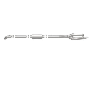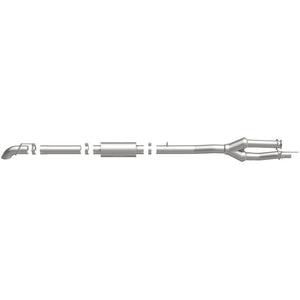 The MagnaFlow Off-Road Pro Series Cat-Back Performance Exhaust System 17200 brings additional off-roading prowess and our deep signature exhaust note to your 6.2L 2011-2016 Ford with a weight-optimized, dyno-tested, corrosion resistant and durable stainless steel design engineered to closely hug the undercarriage for improved ground clearance. Exhaust kit 17200 is engineered to produce Very Aggressive exterior and Aggressive interior sound levels. Extensive 3D scanning was used during the development of this Ford exhaust system to create a direct-fit design, enabling a do-it-yourself installation process. 17200's emissions-legal cat-back design replaces all your truck's exhaust components from the catalytic converter on back with its 3.5in. diameter mandrel bent main piping that passes through 1 Straight-Through mufflers before ending in a turndown before rear axle exit with 3.5in. Satin Clamp-On Single Wall Turndown Cut Edge tips. Exhaust system 17200 is produced using advanced CNC precision robotic manufacturing techniques and backed by MagnaFlow's limited lifetime warranty.