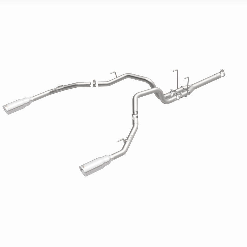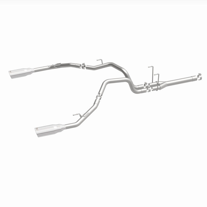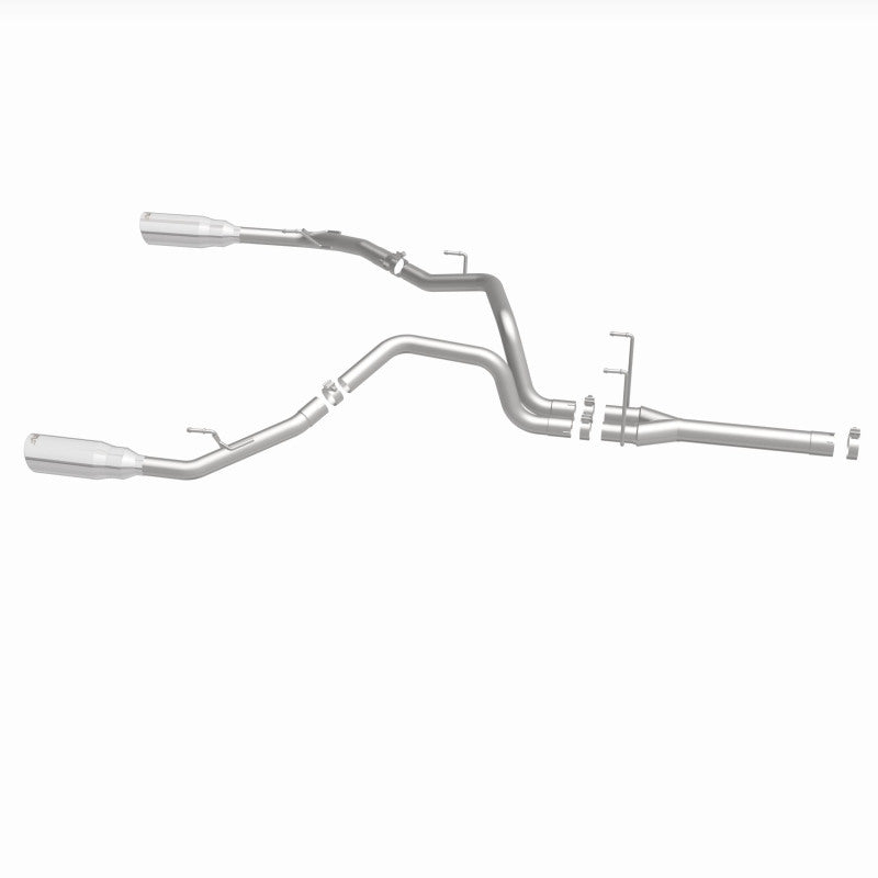 The MagnaFlow Ram 1500 Street Series 19359 has been designed from the ground up to make your 3.0L 2014-2018 Ram 1500 sound like and haul like it should thanks to its heavily dyno-tested, durable and corrosion resistant stainless steel design. This Ram 1500 exhaust kit is tuned to produce Moderate exterior and Mild interior sound levels through its fast-flowing, mandrel bent 3in. main piping and is compatible with 3.0L engines. The system terminates in a Dual Split Rear exit with 5in. Polished Welded-Double Wall-Angle Cut-Rolled Edge tip. Exhaust kit 19359 is tuned to produce our powerful, resonant signature exhaust note at Moderate exterior and Mild interior sound levels. It does this with a filter-back layout that replaces your diesel truck’s stock exhaust system from the particulate filter on back. Extensive 3D scans made during the development process has resulted in an easy-to-install, direct-fit design. Once you hit the road or trail with this exhaust system hooked up your rig will stand out from the rest as the truest of trucks. 19359 is produced using CNC precision robotic manufacturing techniques and is backed by MagnaFlow’s limited lifetime construction warranty.