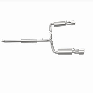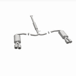 The MagnaFlow Street Series Cat-Back Performance Exhaust System 19457 19457 brings out the personality of your Car with our signature resonant, powerful engine tone and dyno-proven performance. Thanks to its fast-flowing, mandrel bent 2.5in. main piping and 3 Straight-Through mufflers ending in a Quad Split Rear exit with 4in. Polished Welded-On Double Wall Angle Cut Folded Edge tips, this Car exhaust kit has the performance chops to match its sporty sound and appearance. Upgrade your ride to the next level with an exhaust that has the pipes to put other Car's to shame. With this system your vehicle will be producing Moderate exterior and Mild interior sound levels while leaving other cars and trucks feeling envious at every stoplight. Exhaust kit 19457 features a cat-back layout that replaces your ride's stock exhaust components from near the catalytic converter on back. Extensive 3D scanning during development has resulted in a direct-fit design that you can easily install yourself. 19457 is produced using CNC precision robotic manufacturing techniques and is backed by MagnaFlow's 1-year limited finish warranty and limited lifetime construction warranty.