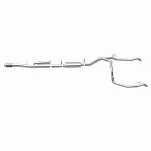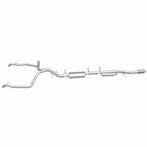 The MagnaFlow Chevrolet Silverado 1500/GMC Sierra 1500 Overland Series Cat-Back Performance Exhaust System #19626 is engineered to enhance the off-road capabilities, performance and sound of your 2019-2023 Chevy Silverado 1500 or GMC Sierra 1500 equipped with the 6.2L engine option. The high clearance design of this exhaust kit increases your rig's capacity to traverse any sort of terrain, while the incorporation of an NDT (No Drone Technology) resonator helps mitigate the droning frequencies that can otherwise occur at highway cruising speeds. #19626 features 3.5 in. diameter main piping that passes through an 18 in. oval bodied straight-through muffler and 14 in. NDT reflection chamber before terminating in a dual split rear exit with high clearance tailpipes. Exhaust kit #19626's easy-to-install direct-fit design is engineered to replace all of your truck's stock exhaust components from near the catalytic converter on back. This Chevrolet Silverado 1500/GMC Sierra 1500 performance exhaust system is made of durable, corrosion resistant stainless steel and produced using advanced CNC precision robotic manufacturing techniques, all backed by MagnaFlow's limited lifetime warranty.