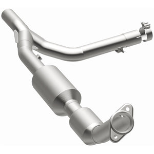 Keep the check engine light off with MagnaFlow OEM Grade Federal/EPA Compliant Direct-Fit Catalytic Converter 280008. With features including free-flowing mandrel-bent tubing and highly corrosion resistant stainless steel construction, easily install this spun body converter yourself using the proper tools, no cutting or welding required. MagnaFlow's state-of-the-art metrology department uses the latest 3D scanning systems during research and development, so you can be confident that your new part will fit and function like the original equipment. By replicating the OE spun body design, the single laser fusion weld greatly reduces the possibility of a leak, and our compact, low-mass design also allows for greater thermal efficiency. Designed to fit the 2000-2003 Ford F-150 and 2004 Ford F-150 Heritage, this direct-fit catalytic converter also interchanges with OE parts 2L3Z-5E212-EA and 1L3Z-5E212-EA. This replacement part is designed to meet or exceed Federal emissions requirements set forth by the EPA, complying with legal standards for OBDII Federally registered vehicles with California or Federal/EPA Emission systems.