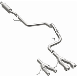 The MagnaFlow 2013-2017 Hyundai Veloster Street Series Cat-Back Performance Exhaust System 19325 brings out the personality of your 1.6L 2013-2017 Hyundai Veloster with our signature resonant, powerful engine tone and dyno-proven performance. Thanks to its fast-flowing, mandrel bent 2.5in. main piping and 1 Straight-Through mufflers ending in a Dual Center Rear exit with 4in. Polished Welded-On Double Wall Angle Cut Folded Edge tips, this Hyundai Veloster exhaust kit has the performance chops to match its sporty sound and appearance. Upgrade your ride to the next level with an exhaust that has the pipes to put other Hyundai Veloster's to shame. With this system your vehicle will be producing Moderate exterior and Mild interior sound levels while leaving other cars and trucks feeling envious at every stoplight. Exhaust kit 19325 features a cat-back layout that replaces your ride's stock exhaust components from near the catalytic converter on back. Extensive 3D scanning during development has resulted in a direct-fit design that you can easily install yourself. 19325 is produced using CNC precision robotic manufacturing techniques and is backed by MagnaFlow's 1-year limited finish warranty and limited lifetime construction warranty.