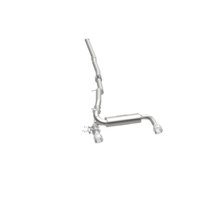 The MagnaFlow 2016-2018 Ford Focus Competition Series Cat-Back Performance Exhaust System 19281 brings an aggressive, attention-grabbing edge to the deep resonant exhaust note we're so well known for. This exhaust kit is designed to enhance your 2.3L 2016-2018 Ford Focus with dyno-proven performance made possible thanks to fast-flowing mandrel bent 3in. main piping and 1 Straight-Through mufflers ending in a Dual Split Rear exit with 4.5in. Polished Welded-On Double Wall Angle Cut Folded Edge tips featuring a sporty finish. The exhaust system's cat-back layout replaces your ride's exhaust system from near the catalytic converter on back. Exhaust system 19281 is engineered to make your vehicle's engine produce Aggressive exterior and Moderate interior sound levels, befitting its competition-oriented design. 19281's direct-fit design makes installation a breeze thanks to the use of advanced 3D scanning techniques. This performance exhaust system is made of 100% durable and corrosion-resistant stainless steel and produced using CNC precision robotic manufacturing, all backed by MagnaFlow's limited lifetime warranty. Please check to ensure compliance with local noise regulations.