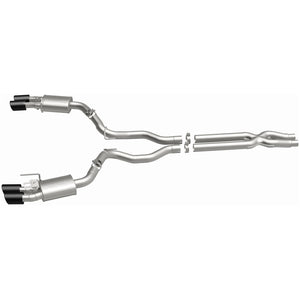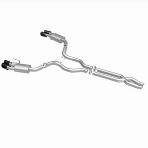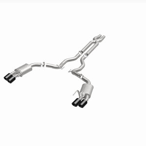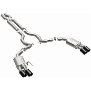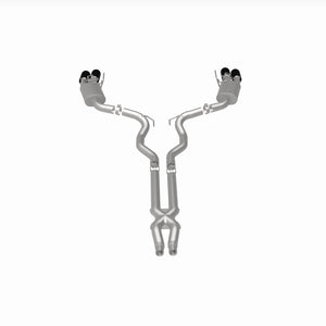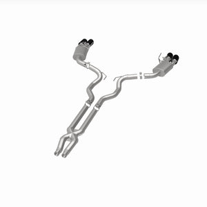 The MagnaFlow 2015-2020 Ford Mustang Competition Series Cat-Back Performance Exhaust System 19299 brings an aggressive, attention-grabbing edge to the deep resonant exhaust note we're so well known for. This cat-back exhaust kit is designed to enhance your 5.2L 2015-2020 Ford Mustang with dyno-proven performance made possible thanks to fast-flowing mandrel bent 3in. diameter piping that passes 2 Straight-Through mufflers ending in a Quad Split Rear exit with 4in. Welded-On Double Wall Angle Cut Rolled Edge carbon fiber tips. The direct-fit design allows for an easy, do-it-yourself installation process. Exhaust system 19299 is engineered to make your Ford Mustang's engine produce Moderate interior and Aggressive exterior sound levels, befitting its competition-oriented design. 19299's direct-fit design makes installation a breeze thanks to the use of advanced 3D scanning techniques. This muscle car exhaust system is made of 100% durable and corrosion-resistant stainless steel and produced using CNC precision robotic manufacturing, all backed by MagnaFlow's limited lifetime construction warranty. Please check to ensure compliance with local noise regulations.