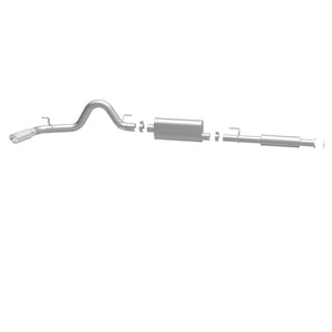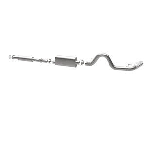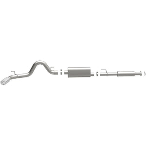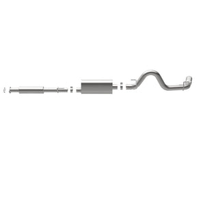 The MagnaFlow 2016-2023 Toyota Tacoma Street Series Cat-Back Performance Exhaust System 19293 brings out the personality of your 3.5L 2016-2023 Toyota Tacoma with our signature resonant, powerful engine tone and dyno-proven performance. Thanks to its fast-flowing, mandrel bent 3in. main piping and 2 Straight-Through mufflers ending in a Single Passenger Side Rear exit with 4in. Polished Welded-On Double Wall Angle Cut Rolled Edge tips, this Toyota Tacoma exhaust kit has the performance chops to match its sporty sound and appearance. Upgrade your ride to the next level with an exhaust that has the pipes to put other Toyota Tacoma's to shame. With this system your vehicle will be producing Moderate exterior and Mild interior sound levels while leaving other cars and trucks feeling envious at every stoplight. Exhaust kit 19293 features a cat-back layout that replaces your ride's stock exhaust components from near the catalytic converter on back. Extensive 3D scanning during development has resulted in a direct-fit design that you can easily install yourself. 19293 is produced using CNC precision robotic manufacturing techniques and is backed by MagnaFlow's 1-year limited finish warranty and limited lifetime construction warranty.