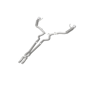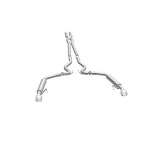 The MagnaFlow 2015-2017 Ford Mustang Competition Series Cat-Back Performance Exhaust System 19099 brings an aggressive, attention-grabbing edge to the deep resonant exhaust note we're so well known for. This exhaust kit is designed to enhance your 3.7L 2015-2017 Ford Mustang with dyno-proven performance made possible thanks to fast-flowing mandrel bent 2.5in. main piping and 2 Straight-Through mufflers ending in a Dual Split Rear exit with 4.5in. Polished Welded-On Double Wall Angle Cut Folded Edge tips featuring a sporty finish. The exhaust system's cat-back layout replaces your ride's exhaust system from near the catalytic converter on back. Exhaust system 19099 is engineered to make your vehicle's engine produce Aggressive exterior and Moderate interior sound levels, befitting its competition-oriented design. 19099's direct-fit design makes installation a breeze thanks to the use of advanced 3D scanning techniques. This performance exhaust system is made of 100% durable and corrosion-resistant stainless steel and produced using CNC precision robotic manufacturing, all backed by MagnaFlow's limited lifetime warranty. Please check to ensure compliance with local noise regulations.
