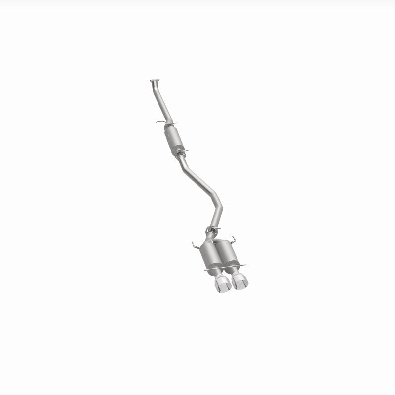 The MagnaFlow 2017-2020 Honda Civic Competition Series Cat-Back Performance Exhaust System 19420 brings an aggressive, attention-grabbing edge to the deep resonant exhaust note we're so well known for. This exhaust kit is designed to enhance your 1.5L 2017-2020 Honda Civic with dyno-proven performance made possible thanks to fast-flowing mandrel bent 2.5in. main piping and 3 Straight-Through mufflers ending in a Dual Center Rear exit with 4.5in. Polished Welded-On Double Wall Angle Cut Folded Edge tips featuring a sporty finish. The exhaust system's cat-back layout replaces your ride's exhaust system from near the catalytic converter on back. Exhaust system 19420 is engineered to make your vehicle's engine produce Aggressive exterior and Moderate interior sound levels, befitting its competition-oriented design. 19420's direct-fit design makes installation a breeze thanks to the use of advanced 3D scanning techniques. This performance exhaust system is made of 100% durable and corrosion-resistant stainless steel and produced using CNC precision robotic manufacturing, all backed by MagnaFlow's limited lifetime warranty. Please check to ensure compliance with local noise regulations.