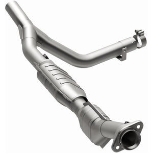 MagnaFlow OEM Grade Federal/EPA Compliant Direct-Fit Catalytic Converter 51544 helps keep the check engine light off. DIY installation is easy with the proper tools (no cutting or welding required). With features including mandrel-bent tubing to eliminate flow restrictions and stainless steel construction to resist corrosion, you can have confidence in the quality of this catalytic converter. Using state-of-the-art 3D scanning systems in the design process, the MagnaFlow metrology department ensures this new part to fit and function like the original equipment. Designed to fit the 2001-2003 Ford F-150 and 2001-2002 Lincoln Navigator, this direct-fit catalytic converter also interchanges with OE parts 2L3Z-5E212-HA and 1L3Z-5E212-HB. Hardware is included to eliminate the hassle of working with corroded factory parts. This replacement part is designed to meet or exceed Federal emissions requirements set forth by the EPA, complying with legal standards for OBDII Federally registered vehicles with California or Federal/EPA Emission systems.