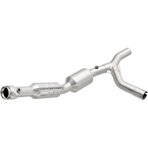 Keep the check engine light off with MagnaFlow OEM Grade Federal/EPA Compliant Direct-Fit Catalytic Converter 51310. With features including free-flowing mandrel-bent tubing and highly corrosion resistant stainless steel construction, easily install this spun body converter yourself using the proper tools, no cutting or welding required. MagnaFlow's state-of-the-art metrology department uses the latest 3D scanning systems during research and development, so you can be confident that your new part will fit and function like the original equipment. By replicating the OE spun body design, the single laser fusion weld greatly reduces the possibility of a leak, and our compact, low-mass design also allows for greater thermal efficiency. Designed to fit the 2005-2007 Ford E-250, 2005-2007 Ford E-150, and more, this direct-fit catalytic converter also interchanges with OE parts 6C2Z-5E212-AA and 5C2Z-5E212-CA. This replacement part is designed to meet or exceed Federal emissions requirements set forth by the EPA, complying with legal standards for OBDII Federally registered vehicles with California or Federal/EPA Emission systems.