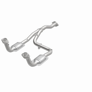 MagnaFlow HM Grade Federal/EPA Compliant Direct-Fit Catalytic Converter 23957 helps keep the check engine light off. DIY installation is easy with the proper tools (no cutting or welding required). With features including mandrel-bent tubing to eliminate flow restrictions and stainless steel construction to resist corrosion, you can have confidence in the quality of this catalytic converter. Using state-of-the-art 3D scanning systems in the design process, the MagnaFlow metrology department ensures this new part to fit and function like the original equipment. This direct-fit catalytic converter is designed specifically for the 2005-2007 Jeep Liberty and interchanges with OE parts 5212 9439AE and 5212 9078AB, among others. Hardware is included to eliminate the hassle of working with corroded factory parts. This replacement part is designed to meet or exceed Federal emissions requirements set forth by the EPA, complying with legal standards for OBDII Federally registered vehicles with Federal/EPA Emission systems.