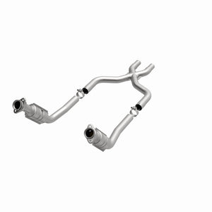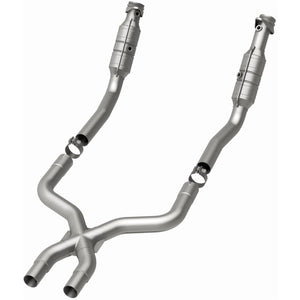 Keep the check engine light off with MagnaFlow OEM Grade Federal/EPA Compliant Direct-Fit Catalytic Converter 49977. With features including free-flowing mandrel-bent tubing and highly corrosion resistant stainless steel construction, easily install this spun body converter yourself using the proper tools, no cutting or welding required. MagnaFlow's state-of-the-art metrology department uses the latest 3D scanning systems during research and development, so you can be confident that your new part will fit and function like the original equipment. By replicating the OE spun body design, the single laser fusion weld greatly reduces the possibility of a leak, and our compact, low-mass design also allows for greater thermal efficiency. This direct-fit catalytic converter is designed specifically for the 2011-2014 Ford Mustang and interchanges with OE part BR3Z-5F250-B. Hardware is included to eliminate the hassle of working with corroded factory parts. This replacement part is designed to meet or exceed Federal emissions requirements set forth by the EPA, complying with legal standards for OBDII Federally registered vehicles with California or Federal/EPA Emission systems.