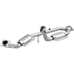 MagnaFlow HM Grade Federal/EPA Compliant Direct-Fit Catalytic Converter 93342 helps keep the check engine light off. DIY installation is easy with the proper tools (no cutting or welding required). With features including mandrel-bent tubing to eliminate flow restrictions and stainless steel construction to resist corrosion, you can have confidence in the quality of this catalytic converter. Using state-of-the-art 3D scanning systems in the design process, the MagnaFlow metrology department ensures this new part to fit and function like the original equipment. This direct-fit catalytic converter is designed specifically for the 1997-1998 Ford Windstar and interchanges with OE parts F78Z-5F250-AA and F88Z-5F250-BA, among others. Hardware is included to eliminate the hassle of working with corroded factory parts. This replacement part is designed to meet or exceed Federal emissions requirements set forth by the EPA, complying with legal standards for OBDII Federally registered vehicles with Federal/EPA Emission systems.
