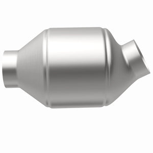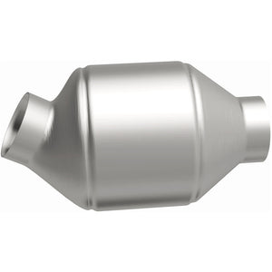 Keep the check engine light off with MagnaFlow OEM Grade Federal/EPA Compliant Universal Catalytic Converter 51776. The Universal design allows the part to fit a wide array of vehicles (cutting and welding required), and the stainless steel construction of this spun body catalytic converter is highly resistant to corrosion. The single laser fusion weld of the spun body greatly reduces the possibility of a leak, and our compact, low-mass design also allows for greater thermal efficiency. This replacement part is designed to meet or exceed Federal emissions requirements set forth by the EPA, complying with legal standards for OBDII Federally registered vehicles with California or Federal/EPA Emission systems.