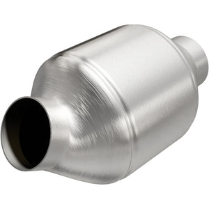 Keep the check engine light off with MagnaFlow OEM Grade Federal/EPA Compliant Universal Catalytic Converter 51774. The Universal design allows the part to fit a wide array of vehicles (cutting and welding required), and the stainless steel construction of this spun body catalytic converter is highly resistant to corrosion. The single laser fusion weld of the spun body greatly reduces the possibility of a leak, and our compact, low-mass design also allows for greater thermal efficiency. This replacement part is designed to meet or exceed Federal emissions requirements set forth by the EPA, complying with legal standards for OBDII Federally registered vehicles with California or Federal/EPA Emission systems.